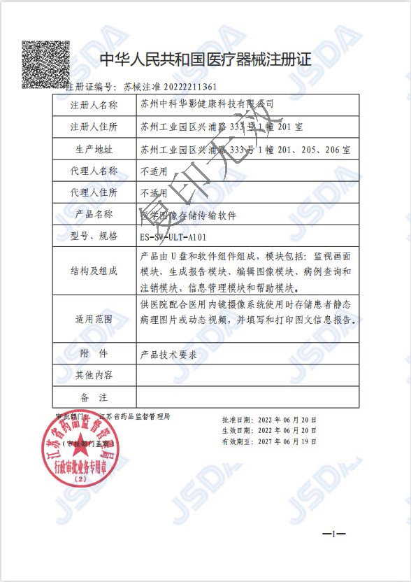 近日,苏州纳米城企业苏州中科华影健康科技有限公司自主研发的“医学图像存储传输软件”获得江苏省药品监督管理局颁发的医疗器械注册证(注册证编号:苏械注准20222211361),正式获准上市。